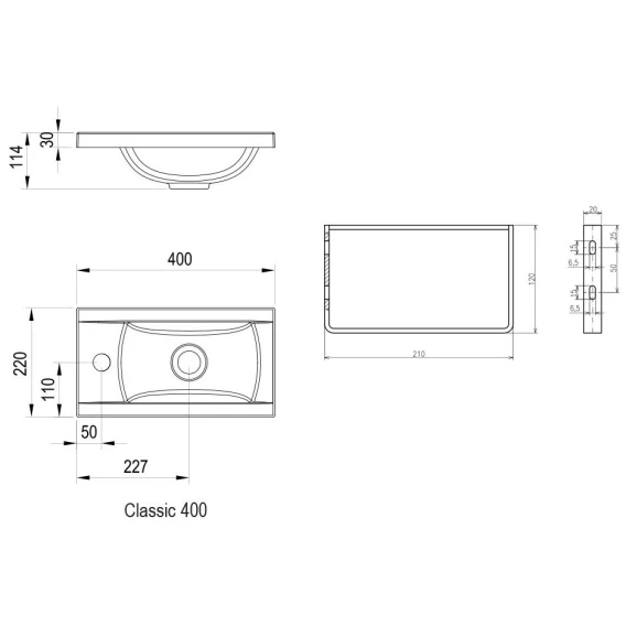 Умывальник 40 см Ravak Classic 400 с отверстием XJD01140000
