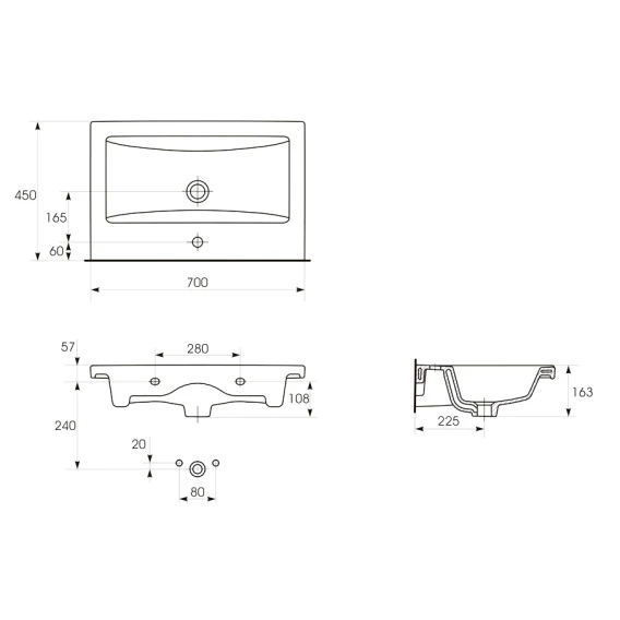 Раковина 70x45 см Diborg Como S-UM-COM70/1-w