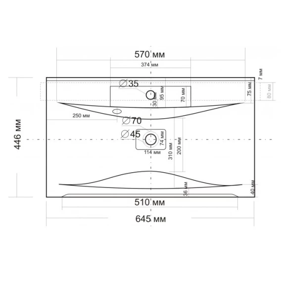 Намеченных отверстий для смесителя
