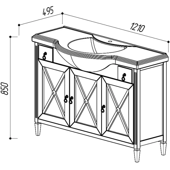 Раковина 121x49,5 см Belux Классик