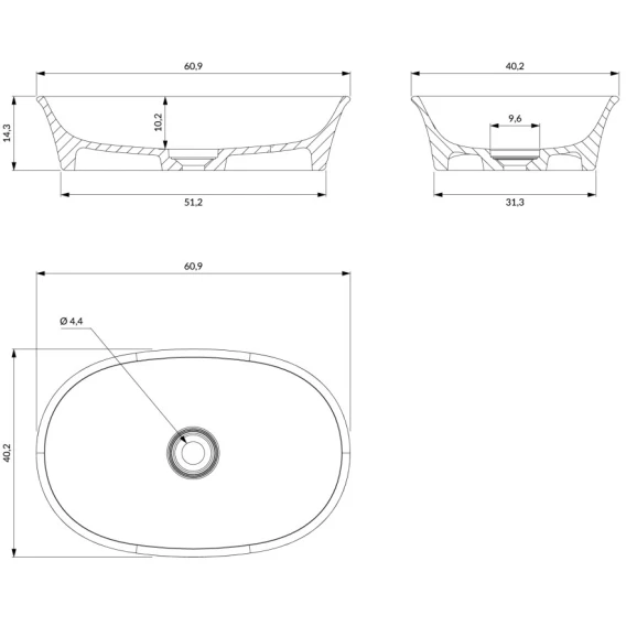 Раковина 60,9x40,2 см Omnires Classica CLASSICAUNBP