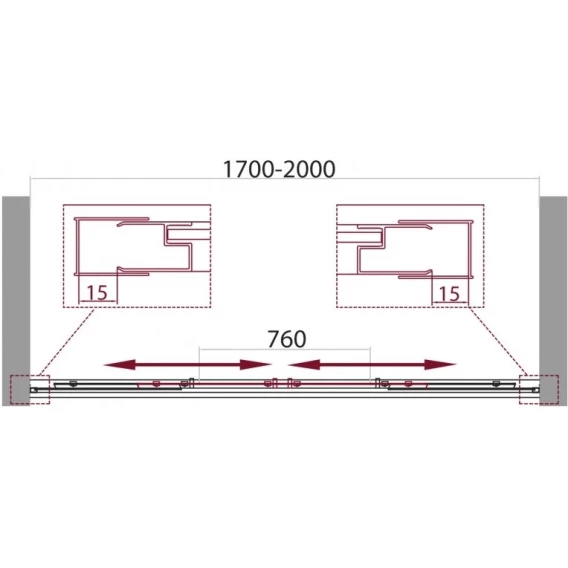 Душевая дверь 170-200 см BelBagno UNIQUE-BF-2-170/200-M-Cr матовое