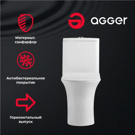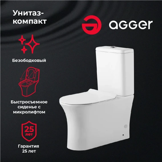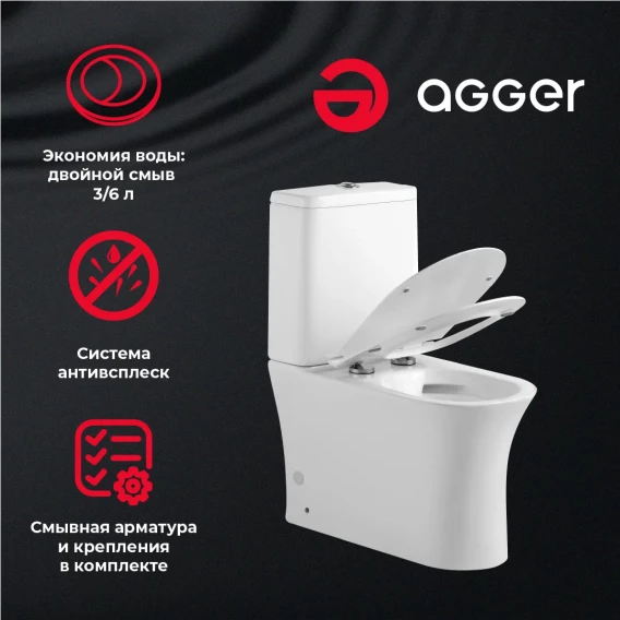 Унитаз-компакт Agger AT01000 безободковый, с сиденьем микролифт, белый глянец