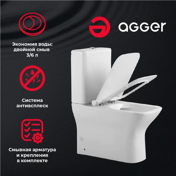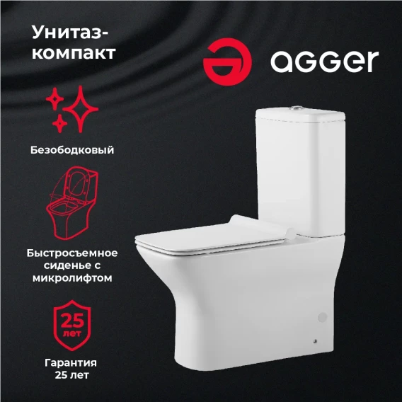 Унитаз-компакт Agger AT02000 безободковый, с сиденьем микролифт, белый глянец