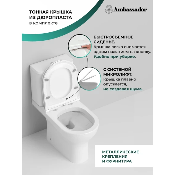 Унитаз-компакт Ambassador Abner 107K19001RS безободковый, с сиденьем микролифт, белый глянец