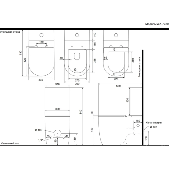 Бачок, Чаша унитаза, Сиденье с микролифтом
