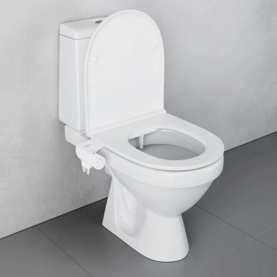 Биде-приставка – стильный и функциональный аксессуар для оснащения туалетной комнаты. Наличие биде-приставки позволяет осуществлять гигиенические процедуры не выходя из комнаты. Удобство крепления осуществляется за счет наличия крепежной планки позволяющей присоединить приставку к унитазу без проведения дополнительных монтажных работ в комнате. Единственная разводка которую необходимо осуществить для подключения изделия – это подведение горячей и холодной воды. Биде-приставка изготовлена из высококачественного ABC пластика.