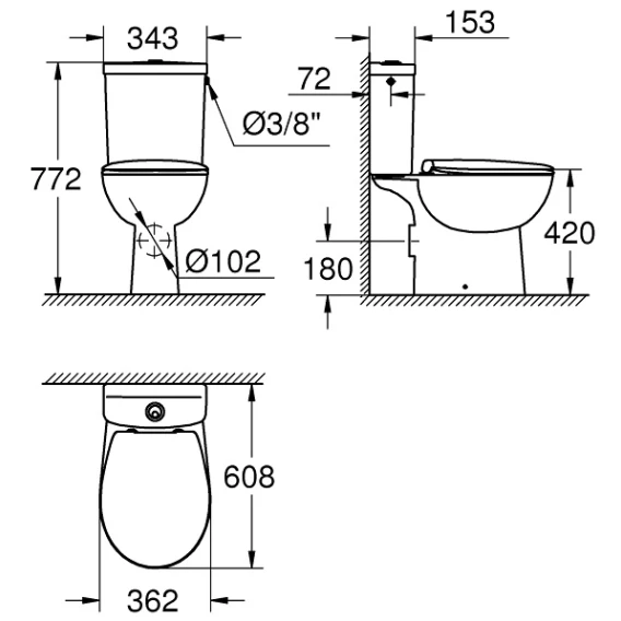 Набор унитаза GROHE Bau Ceramic обладает всеми качества современного унитаза - качество сочетается с приятным стилем. Унитаз изготовлен из гладкого фарфора. Монтажный комплект включен в бачок, а сиденье унитаза GROHE Bau Ceramic крепится быстроразъемным шарниром для удобства обслуживания. Функция SoftClose означает, что крышка не будет резко падать и не сможет случайно защемить ваши пальцы. В унитазе открытый обод и горизонтальное выпускное отверстие, а объем смыва составляет 6/3 л. Керамика GROHE основывается на международной экспертной оценке GROHE в сфере сантехнического оборудования и столетнем безупречном опыте корпорации LIXIL, которая является лидером индустрии в категории керамика. Керамика GROHE Bau - вневременной дизайн и разнообразие для дизайна ванной комнаты.