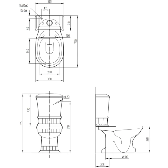 Крепление, Бачок, Комплект механизма слива, Чаша унитаза