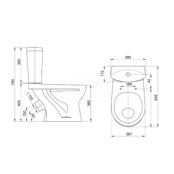 Унитаз-компакт Santeri Ultra 1.P401.3.S00.00B.F (4607143319653) косой выпуск, с сиденьем, белый