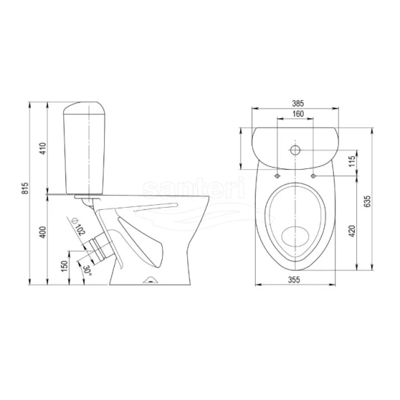 Унитаз-компакт Santeri Versia 1.P401.5.S00.00B.F (4607143310834) косой выпуск, с сиденьем, белый