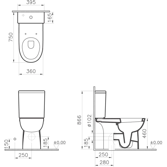 Бачок, Чаша унитаза, Сиденье