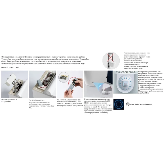 • Смыв импульсный, от батареек (4 шт. АА — приобретаются отдельно)