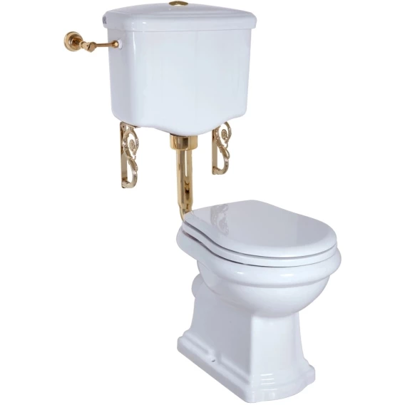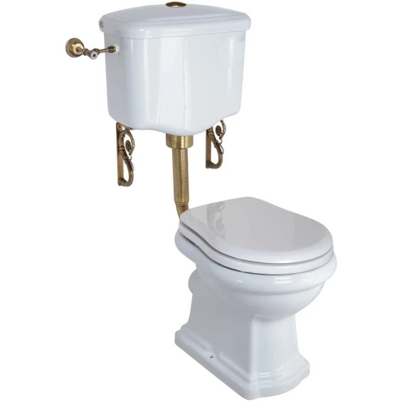 Унитаз напольный Migliore Bella 31103 с высоким бачком, белый, фурнитура бронза/белый