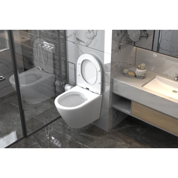 Унитаз подвесной Abber Bequem AC1102 безободковый, с сиденьем микролифт, белый