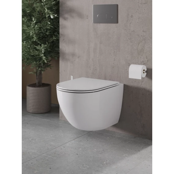 Унитаз подвесной Agger AT03100 безободковый, с сиденьем микролифт, белый глянец