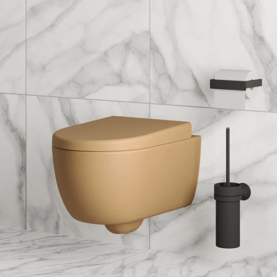 Унитаз подвесной Ambassador Abner 103T20501R-102T20501 безободковый, с сиденьем микролифт, темно-бежевый матовый