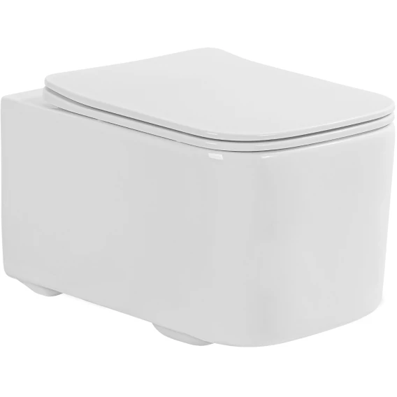 Унитаз подвесной Aquatek Квадро AQ1515T-00 безободковый, торнадо, с сиденьем микролифт, белый