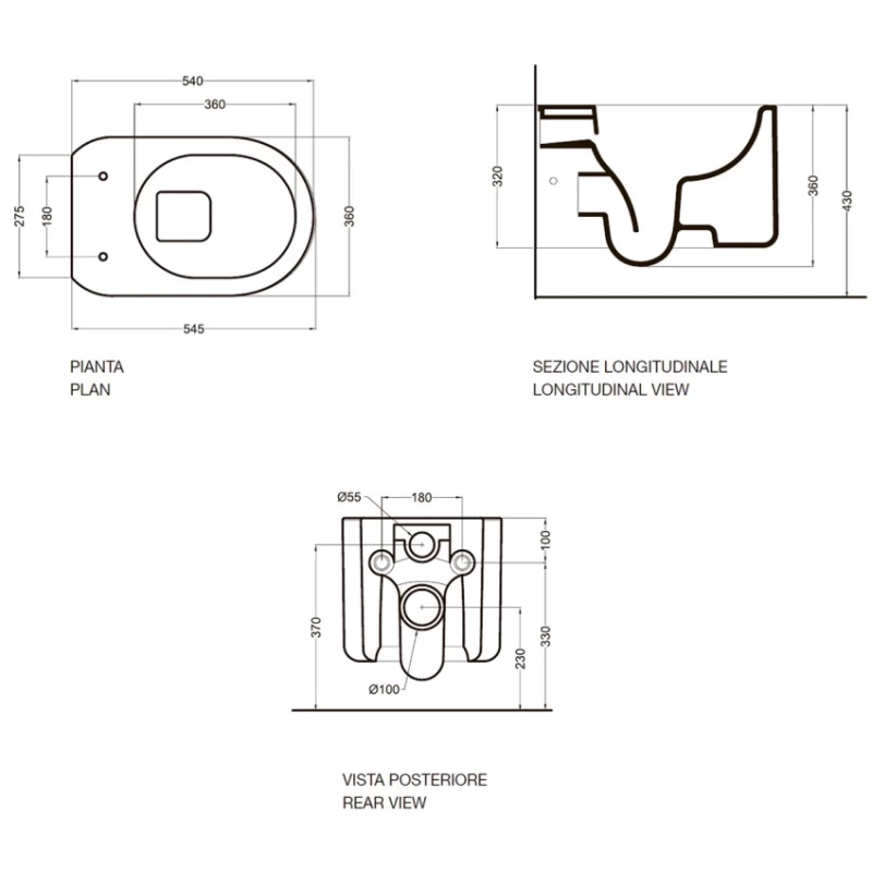 Чаша напольного безободкового унитаза Cezares Lux CZR-159-CPR