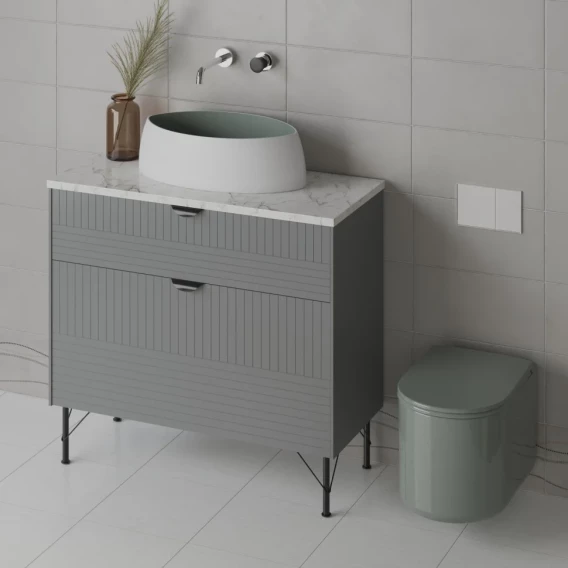 Унитаз подвесной AXA Delano WCWH9001003 безободковый, с сиденьем микролифт, серо-зеленый глянец
