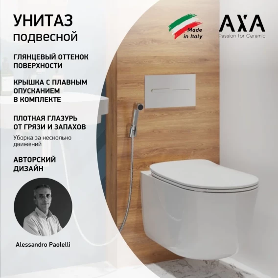 Унитаз подвесной AXA Glomp WCWH201001 безободковый, с сиденьем микролифт, белый глянец
