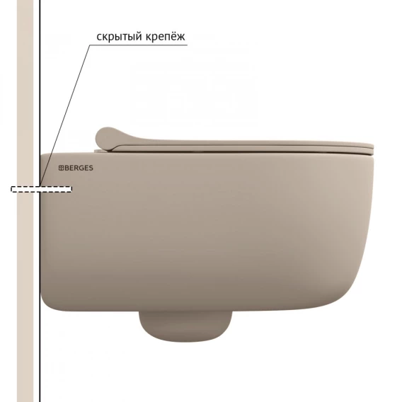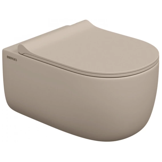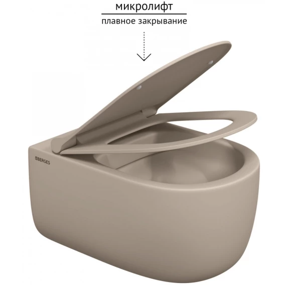 Унитаз подвесной Berges Ego XL 082728 безободковый, с сиденьем микролифт, жасмин матовый