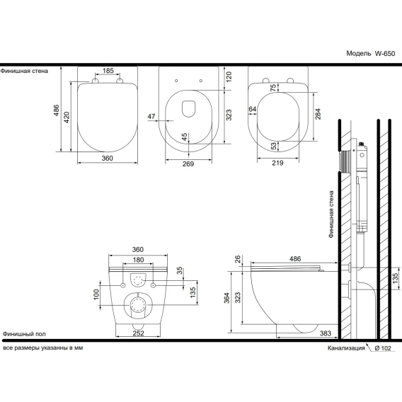 Унитаз подвесной Black & White Gravity 650W00 безободковый, торнадо, с сиденьем микролифт, белый