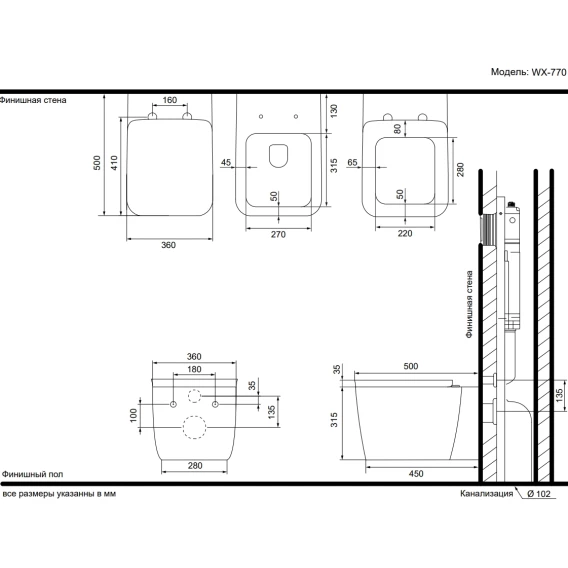 Унитаз подвесной Black & White Gravity 770WX безободковый, торнадо, с сиденьем микролифт, белый