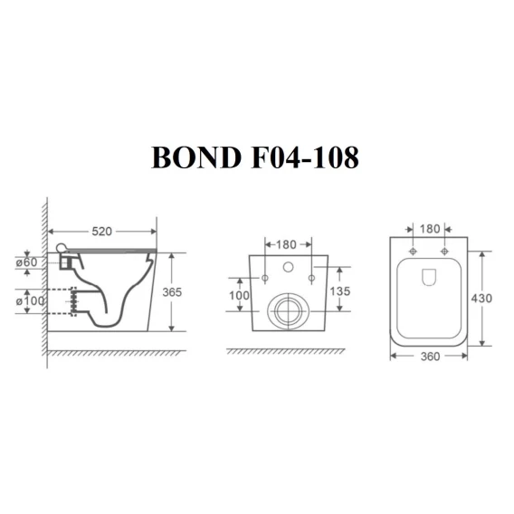Унитаз подвесной Bond Cube F04-108 безободковый, с сиденьем микролифт, черный матовый