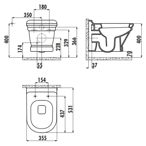 Унитаз подвесной Creavit Antik AN320-11CB00E-0000 белый