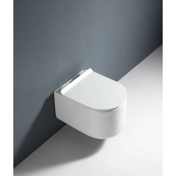 Унитаз подвесной D&K Rhein.Dusseldorf DT1496516 безободковый, торнадо, с сиденьем микролифт, белый