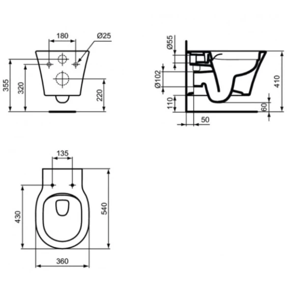 Унитаз подвесной Ideal Standard Connect Air E2288V3 безободковый, черный матовый
