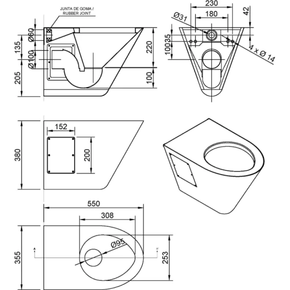Унитаз подвесной Nofer 13011.S нержавеющая сталь