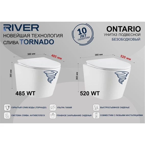 Унитаз подвесной River Ontario 520 MB 10000013709 безободковый, торнадо, с сиденьем микролифт, черный матовый