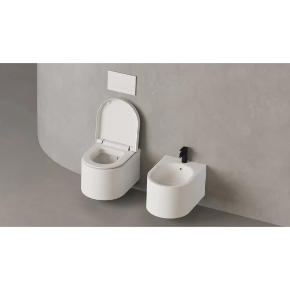 Обновлённый подвесной безободковый унитаз GEMELLI с микролифтами — это современная версия классического унитаза GEMELLI. Новая модель отличается отсутствием задней планки на крышке унитаза, а также крышкой и сиденьем из материала S-Stone со встроенной системой микролифтов. Керамическая безободковая основа с антибактериальным покрытием и горизонтальным выпуском обеспечивает лёгкую очистку и предотвращает распространение бактерий.