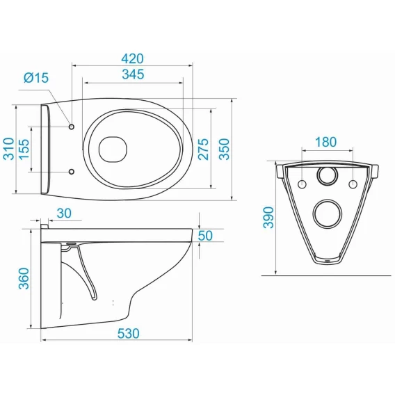 Комплект подвесной унитаз Santek Бореаль 1.WH30.1.977 + система инсталляции TECE 9300302 + 9240921