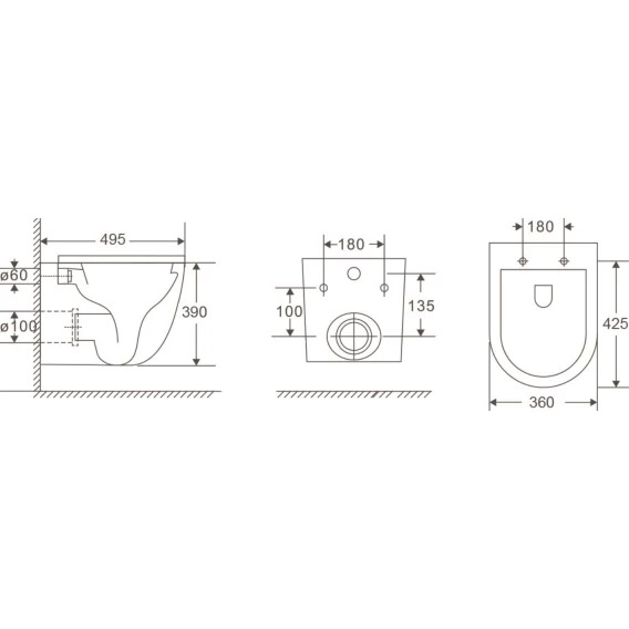 Унитаз подвесной Terminus Аврора Monolit 01WM49x36W безободковый, торнадо, с сиденьем микролифт, белый
