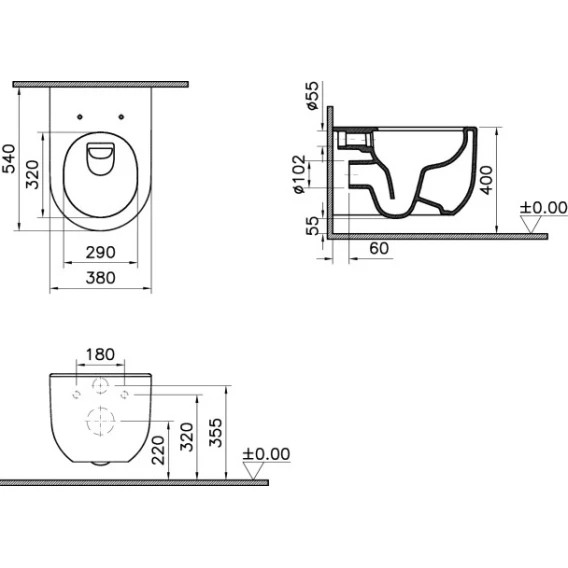 Унитаз подвесной VitrA Liquid 7321B403-0075 безободковый, белый