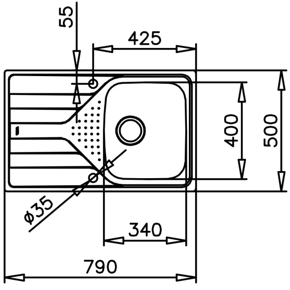 • Внешние размеры: 790 х 500 мм