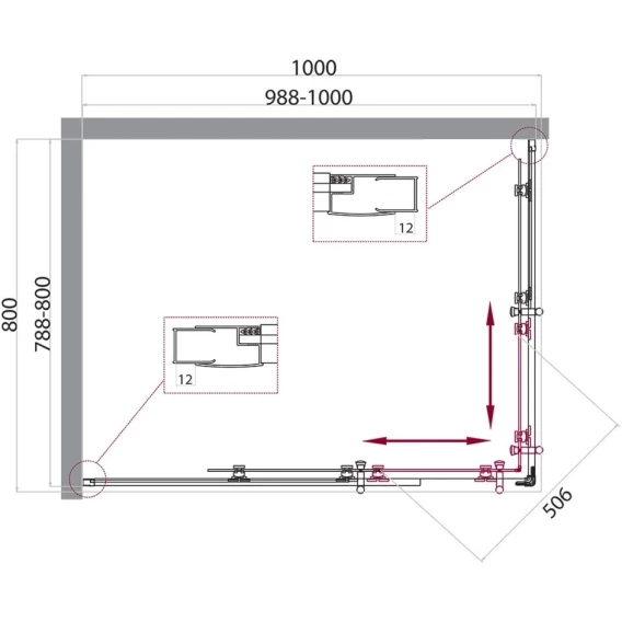 Душевой уголок 100x80 см BelBagno Uno UNO-195-AH-2-100/80-P-Cr текстурное стекло