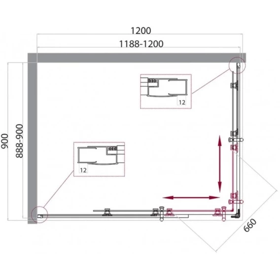 Душевой уголок 120x90 см BelBagno Uno UNO-195-AH-2-120/90-C-Cr прозрачное
