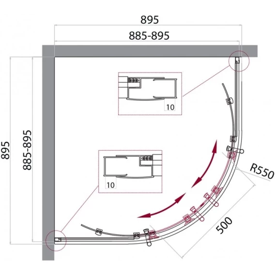 Душевой уголок 89,5x89,5 см BelBagno Uno UNO-195-R-2-90-P-Cr текстурное стекло