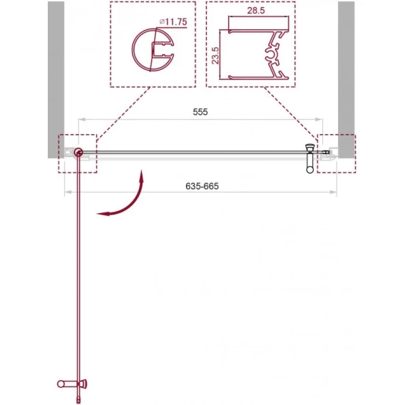 Душевая дверь 65 см BelBagno UNO-B-1-65-C-Cr прозрачное