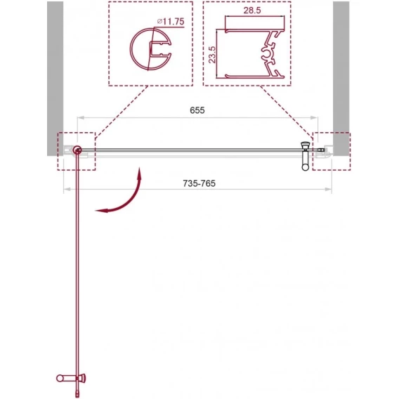Душевая дверь 75 см BelBagno UNO-B-1-75-C-Cr прозрачное