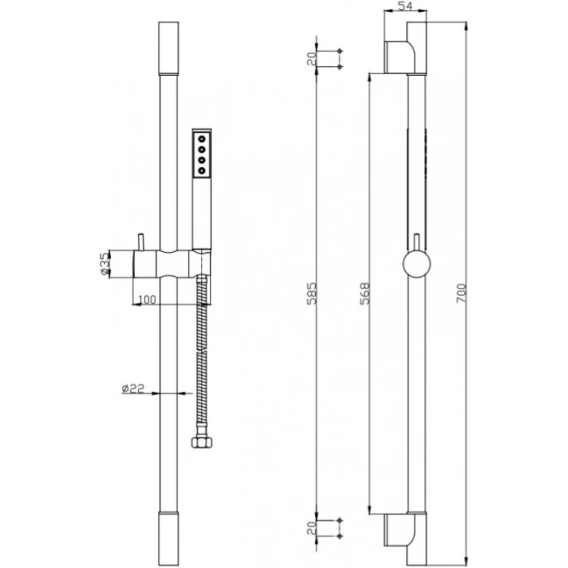 Душевой шланг, Душевая лейка, Держатель для душевой лейки, Штанга душевая