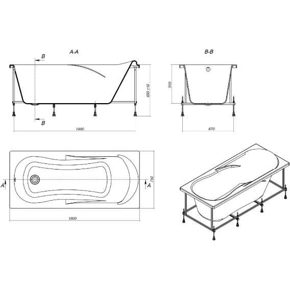 Акриловая ванна Black & White Swan 104SB00 180x80 см, отдельностоящая, белый