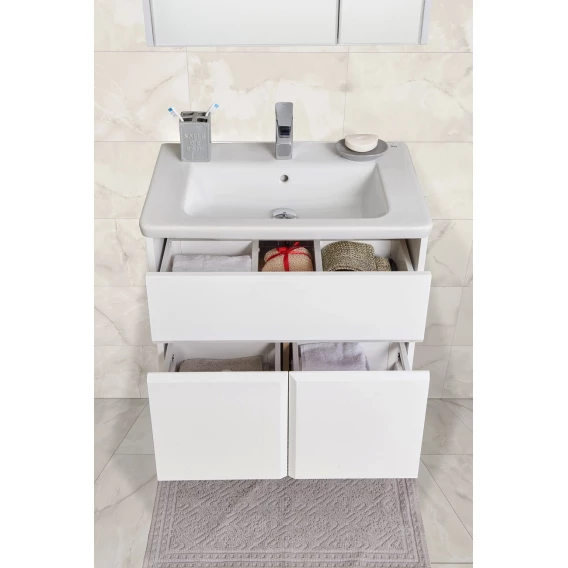 Тумба с раковиной белый глянец 80 см Roca Up ZRU9303012 + 327470000