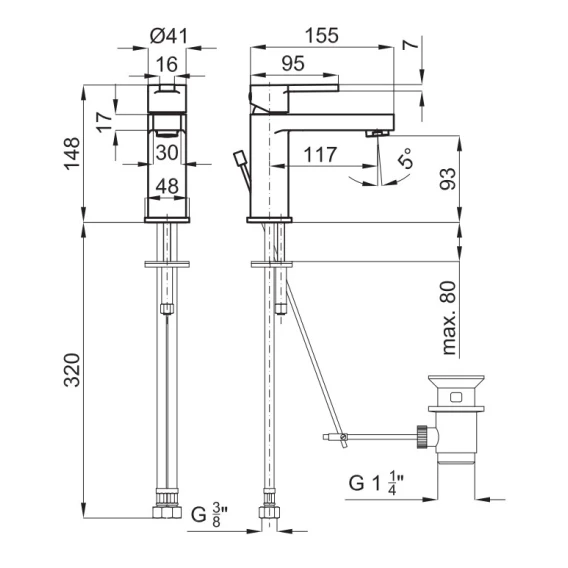 Смеситель для раковины с донным клапаном Noken Urban N199999610