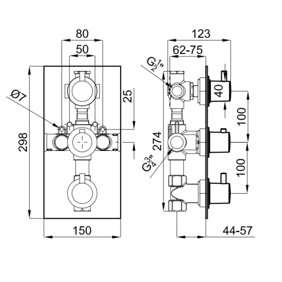 Регулирующий переключатель давления.Пропускная способность при 3 барах - 1 выход 26 л/мин.,другой с 16 л/мин. и последний 45,5 л/мин.Включает 1 выходбольшого давления с независимым ручным душам,клапан слива антивозвращение и предохранитель на 38ºС