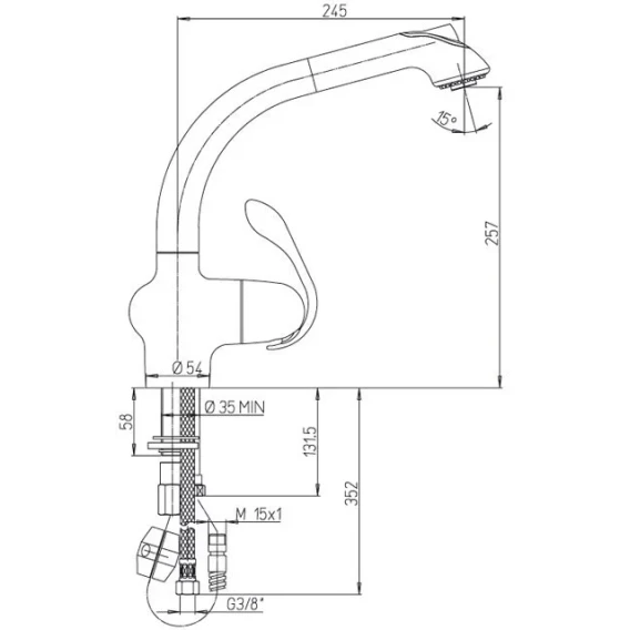 Крепление, Аэратор, Гибкая подводка, Душевой шланг, Душевая лейка
